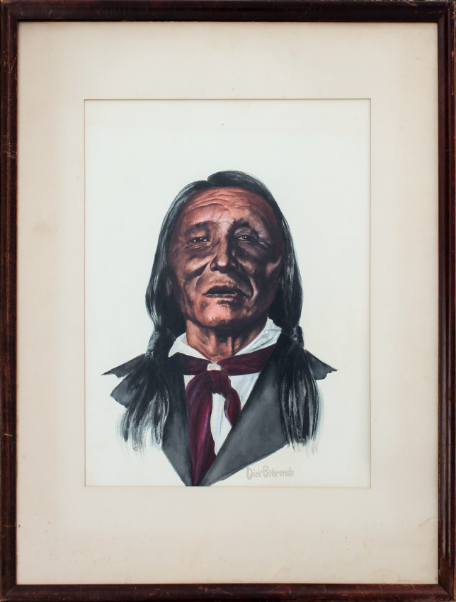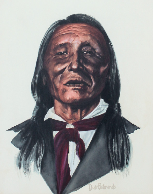 BEHRENDS, Dick (American, 20th Century): Sitting Bull Water color, sight size 15.5'' x 12.25'', signed lower right, framed 24.25'' x 20'',