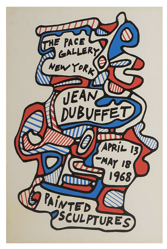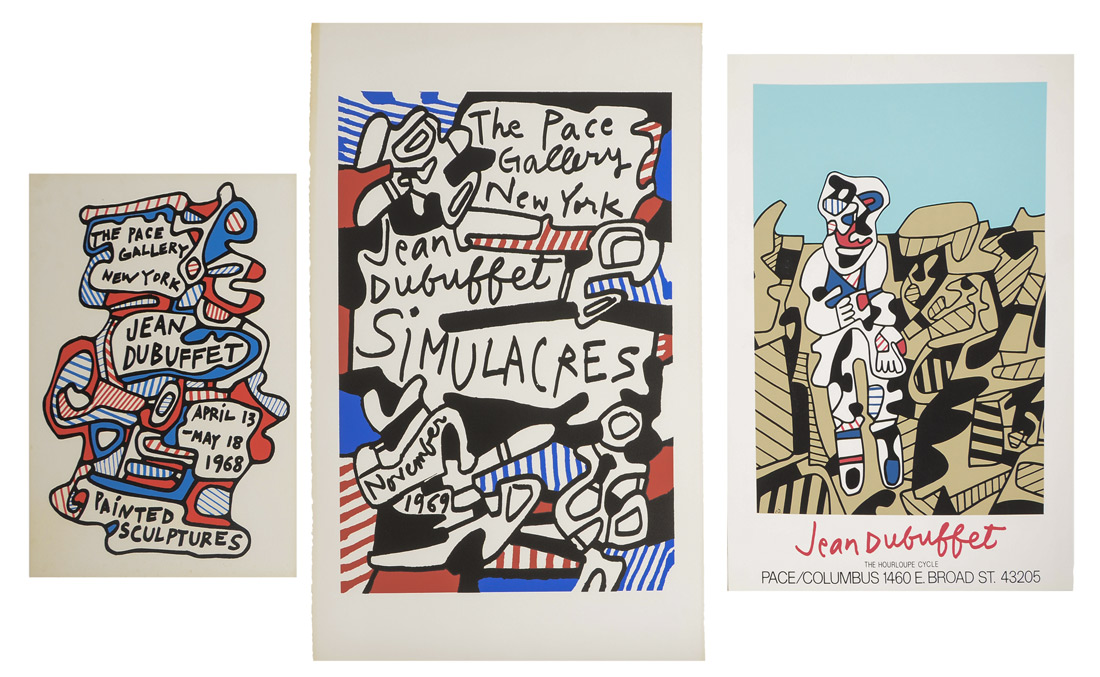 DUBUFFET 3 POSTER LOT: 1) Pace Gallery 1968, Serigraph, Exhibition Poster for Painted Sculptures, 24 5/8'' x 18.5'' - Visible browning along edges with pale scattered foxing; 2) Serigraph Exhibition poster for the Hourloupe Cycle Pace/Columbus, 33.5'' x 23.5''; 3) Pace Gallery, Simulacres 1969, Serigraph, 40'' x 26.25''.