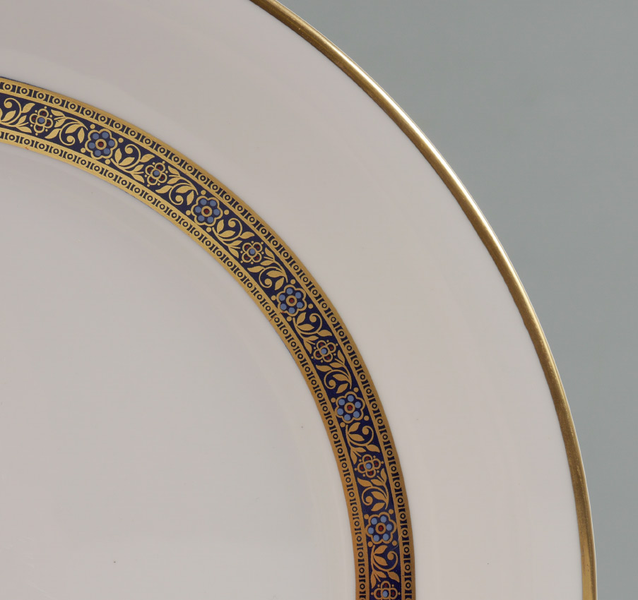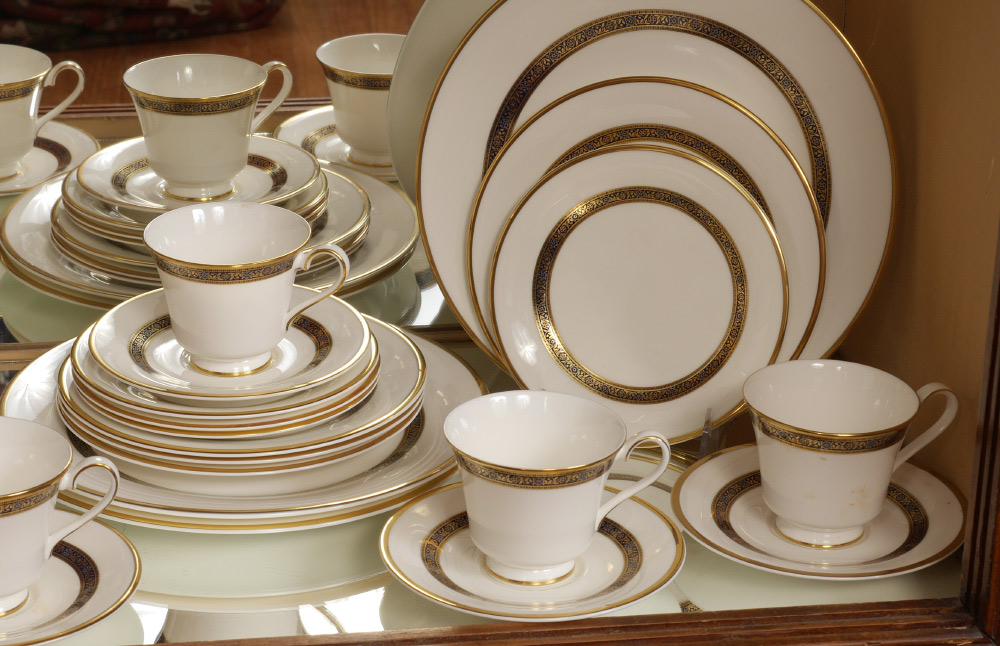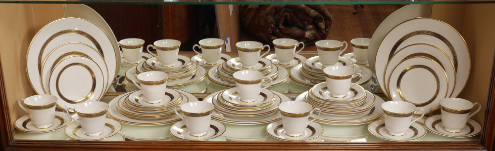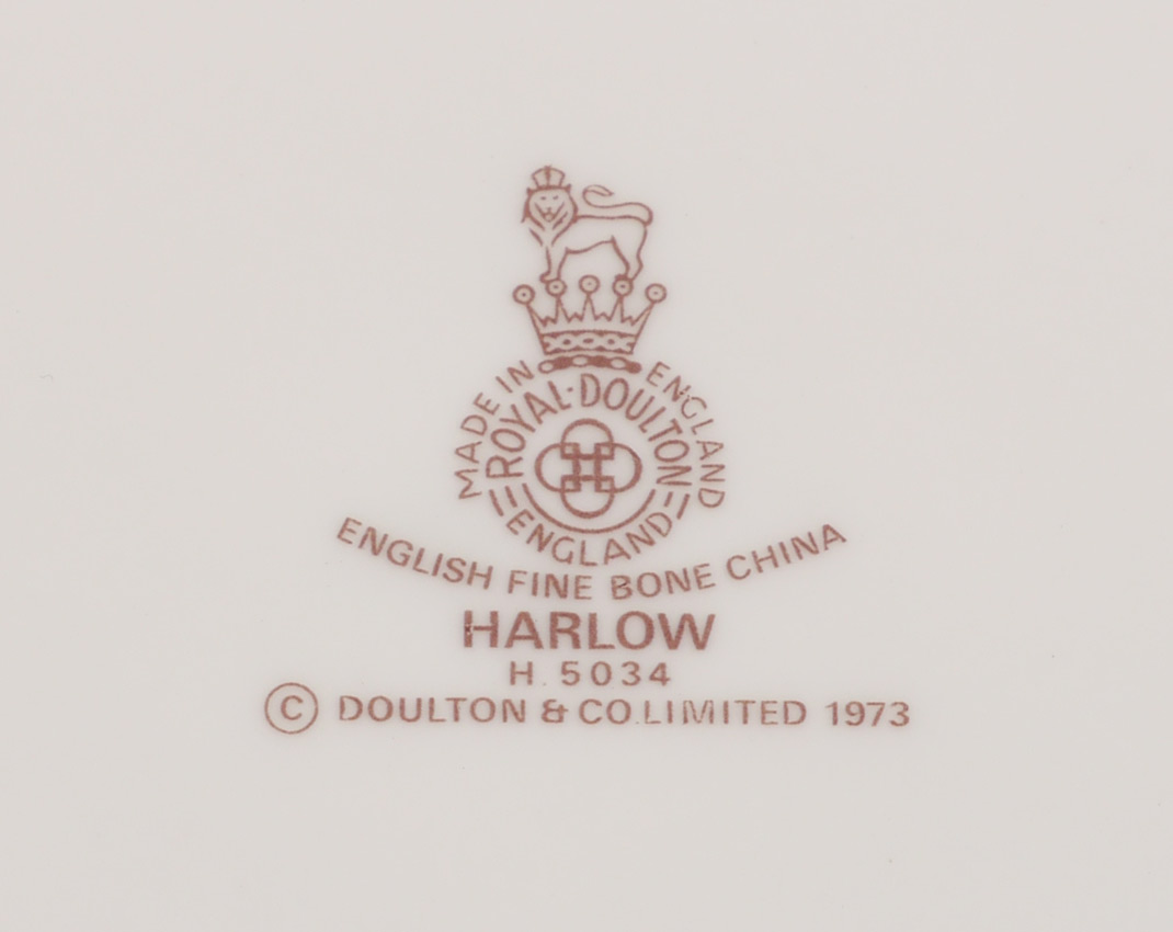 ROYAL DOULTON HARLOW PATTERN CHINA SERVICE: Approx. 46 pieces in the Harlow pattern by Royal Doulton to include 8 dinner plates (10 5/8''), 11 salad plates (8''), 9 bread plates, 9 teacups and saucers.