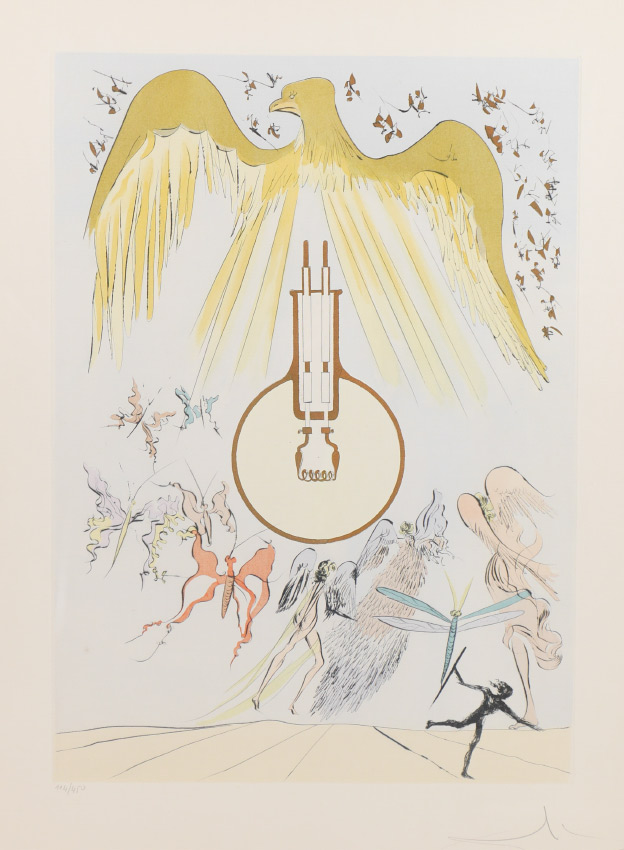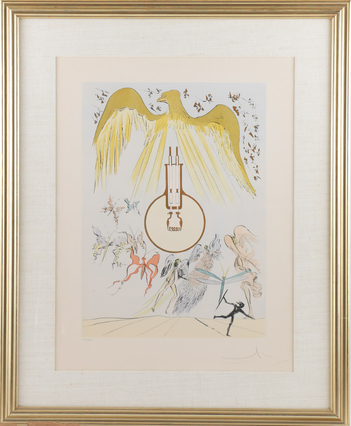 DALI, Salvador, (Spanish, 1901-1989): ''L'Ampoule Incandescence (Light Bulb)'', Engraving, Impression size 19.75'' x 14'', signed lower right, 114/450 lower left, framed, 33.5'' x 27.5''.