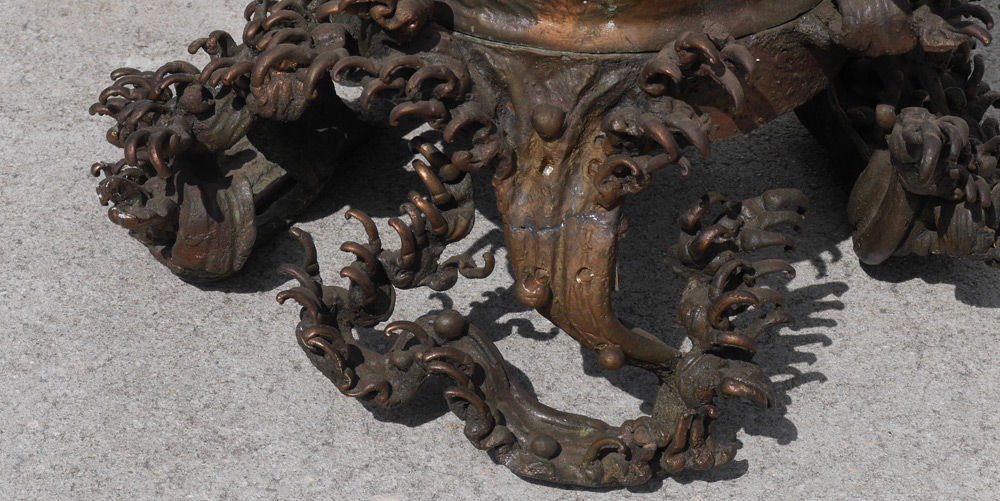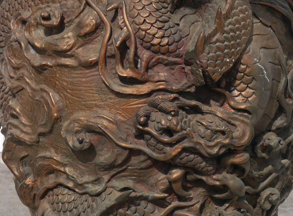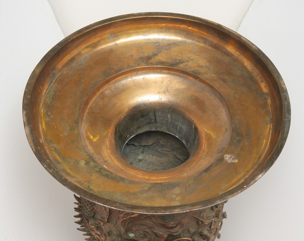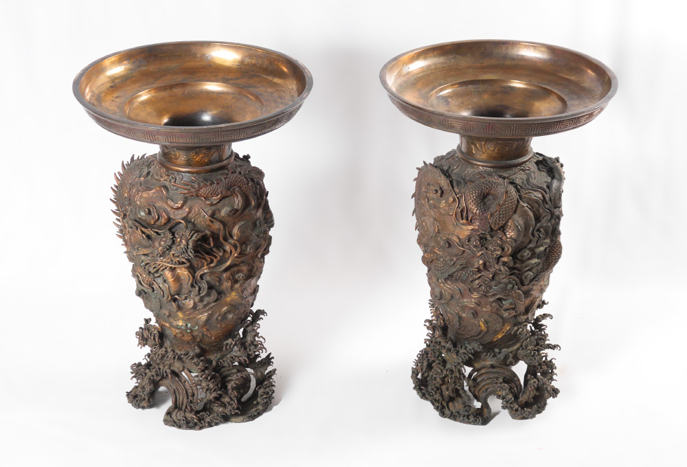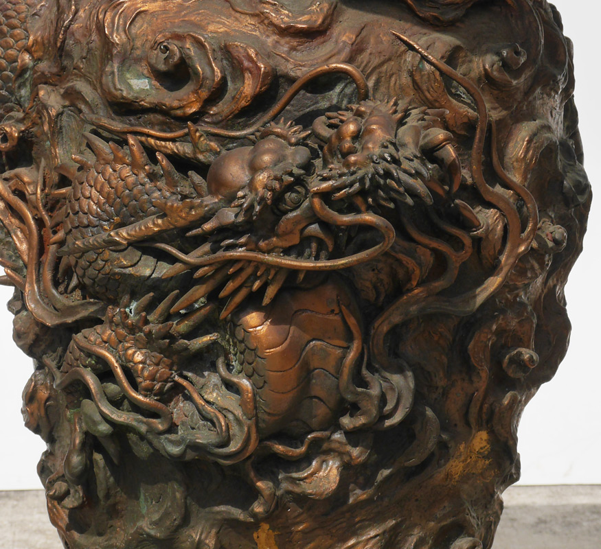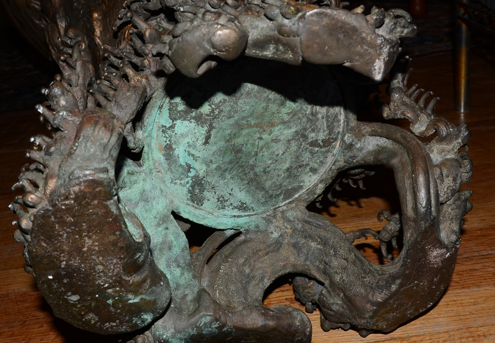 CONDITION: Repair to one base, one dragon missing head, uneven finish.