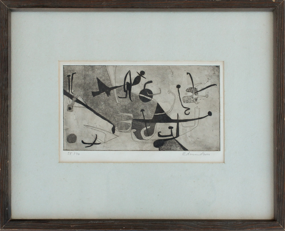 EDMONDSON, Leonard, (American, 1916-2002): Abstract Composition, Etching, sight size 5.75'' x 9.25'', pencil signed lower right, numbered 55 of 70 lower left, framed, 13'' x 16.25''.