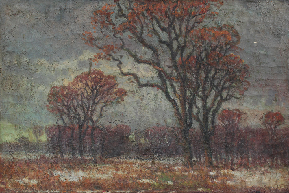 BOSZNAY, Istvan, (Hungarian, 1868-1944): Autumnal Pastoral Scene, Oil/Canvas, 28 5/8'' x 44.5'', signed lower right, dated 1902, unframed.