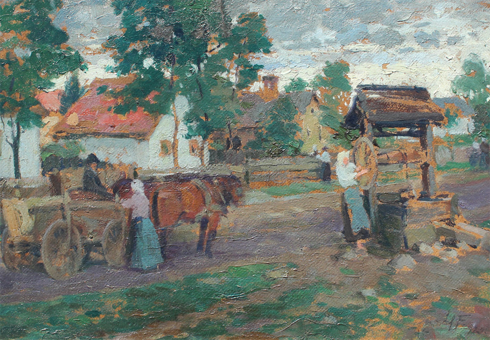 GAAL, Ferenc, (Hungarian, 1891-1956): Daily Life in Hungarian Village, Oil on Canvasboard, 13.75'' x 19.25'', signed lower right, dated 1925, framed, 18'' x 24''.