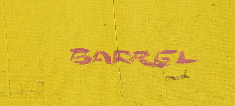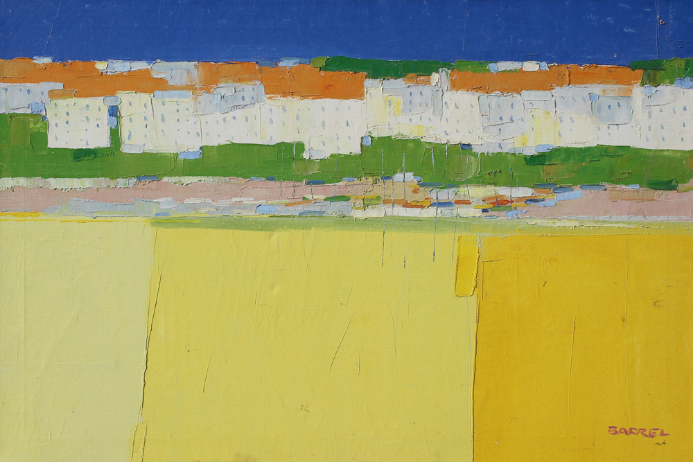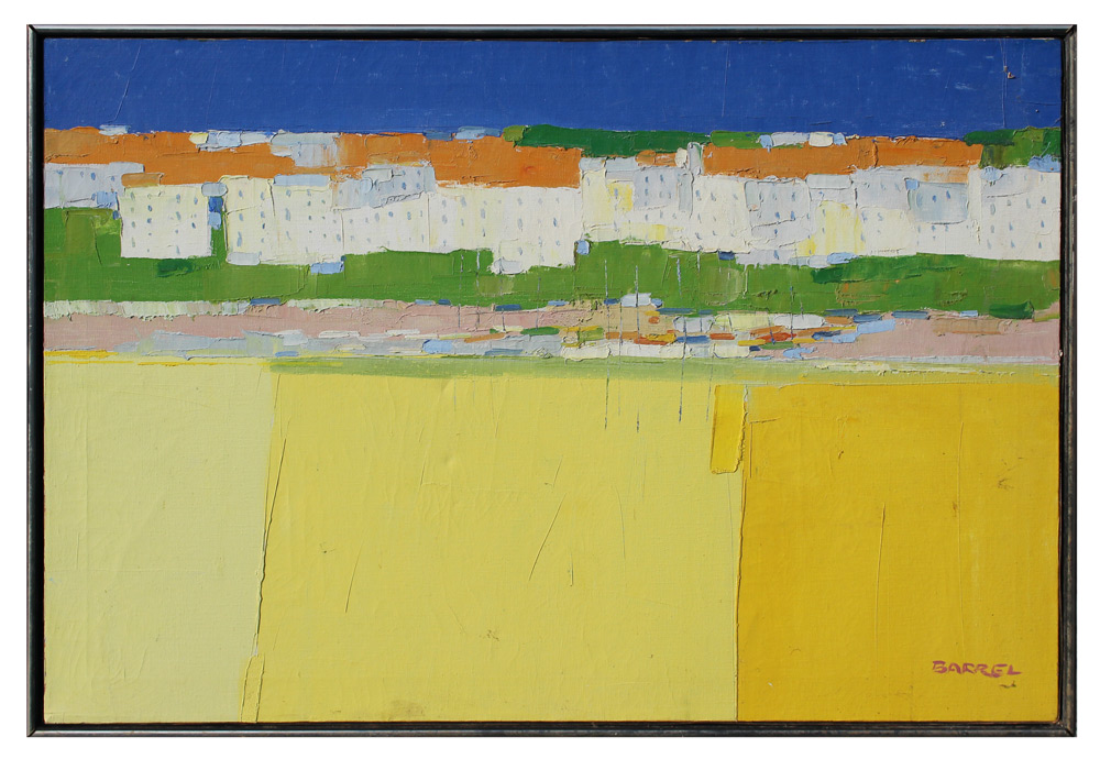 BARRELL, George Jr., (American, 1923-2003): Modernist City Scene, Oil/Canvas, 24'' x 36'', signed lower left, framed, 25'' x 37''.