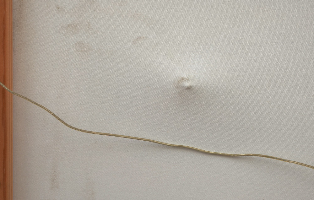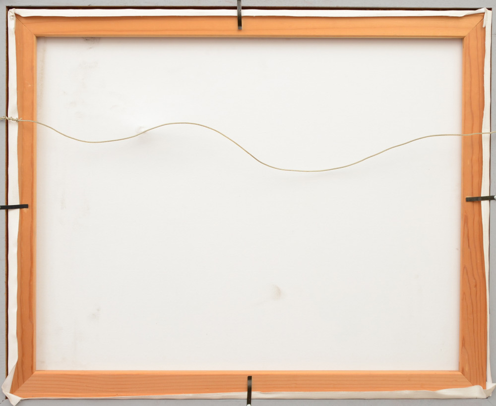 CONDITION: Indentation damage to canvas, will need some minor work, frame shows minor wear, sold as is.
