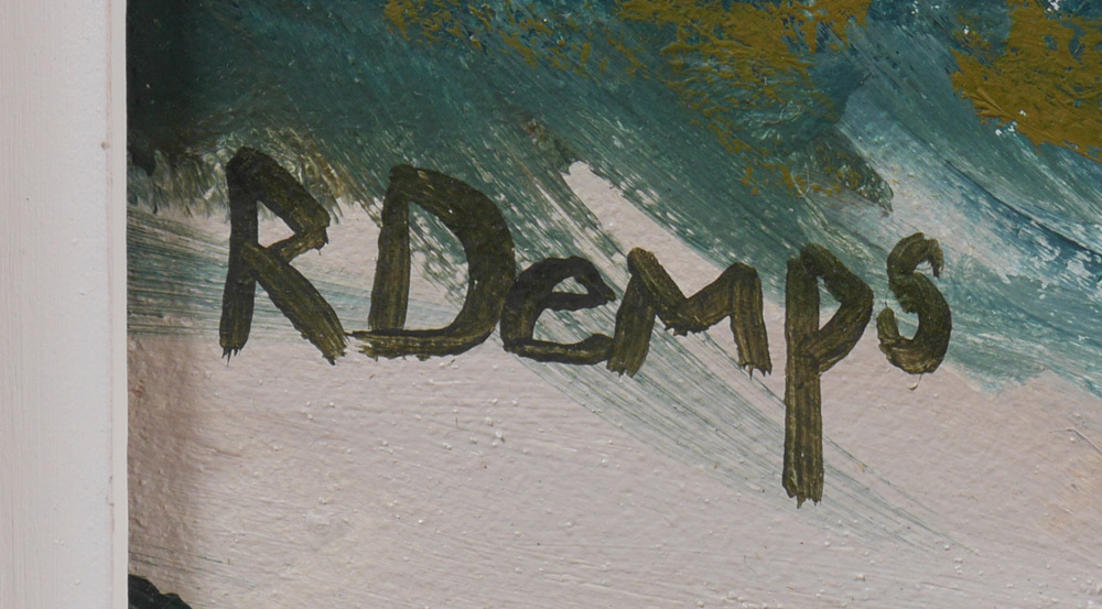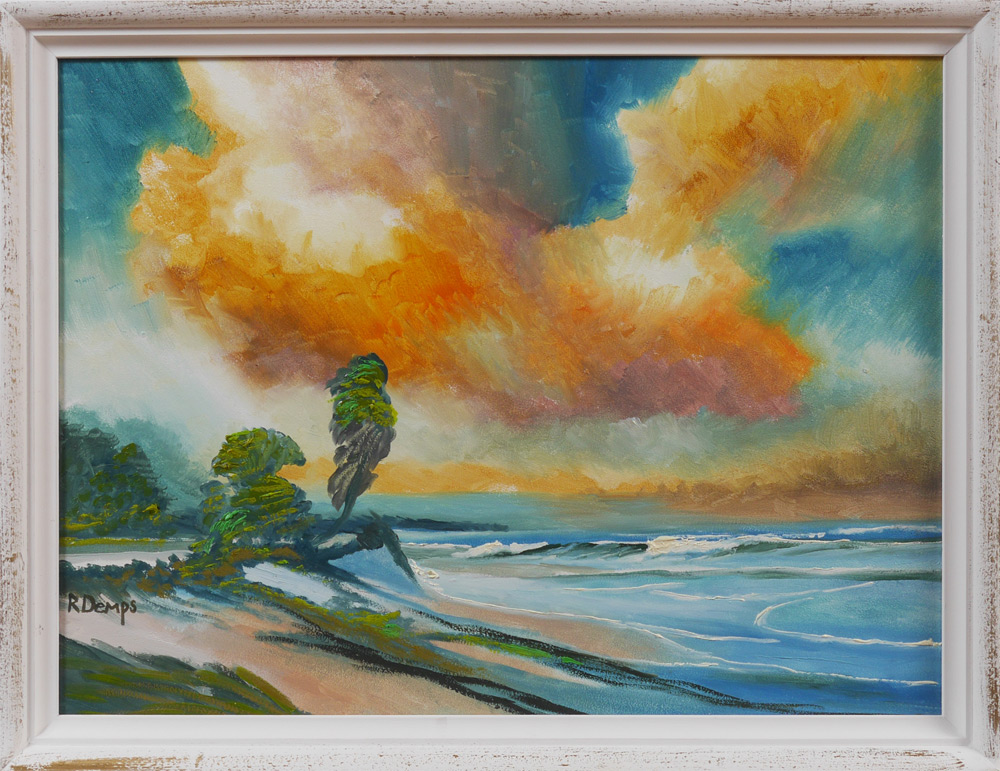 DEMPS, Rodney, (American, 20th Century): Florida Highwaymen Stormy Beach Scene, Oil/Masonite, signed lower left, 18'' x 24'', framed 19 1/2'' x 25 1/2''.