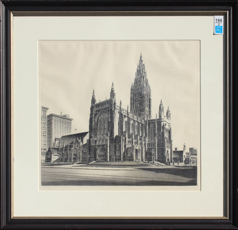 ARMS, John Taylor, (American, 1887-1953): ''Gothic Magic'', (East Liberty Presbyterian Church, Pittsburgh), Etching and Aquatint, sight size 16.25'' x 18.25'', pencil signed lower right and dated 1941, marked lower left Private Collection ''e'', custom frame, 25'' x 26.5''.