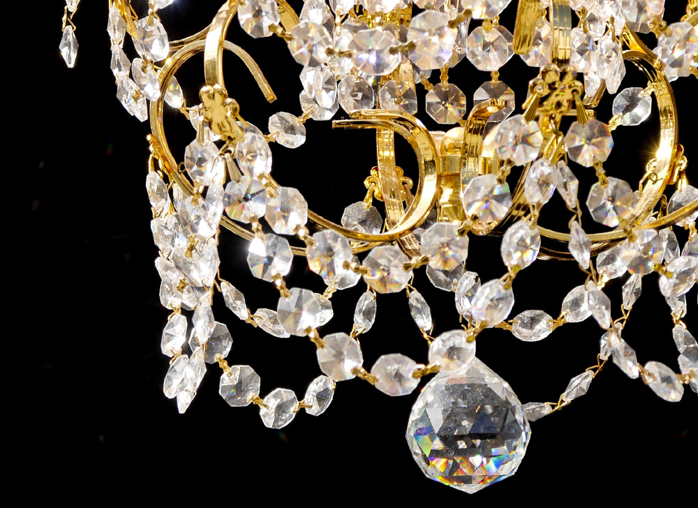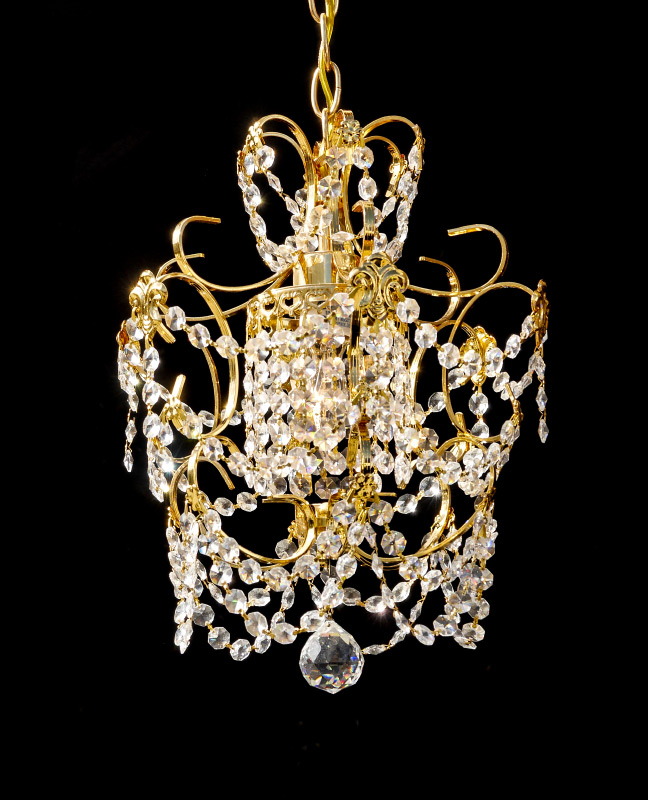 A PETITE CRYSTAL CHANDELIER: Diminutive in size for that special spot. Measures approx. 14'' high x 12'' dia. The chain is 24''