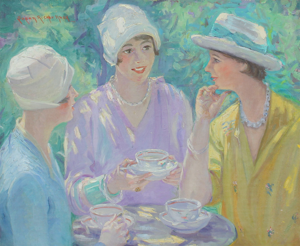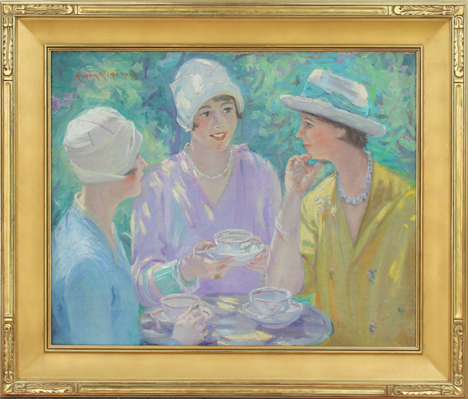 KNOX, Susan Ricker, (American, 1874-1959): ''The Conspirators'', Large Impressionist Painting of 3 Young Ladies Planning An Event, Oil/Canvas, 29'' x 36'', signed upper left, encased in fine contemporary carved and gilded impressionist frame, 39'' x 46.25''.