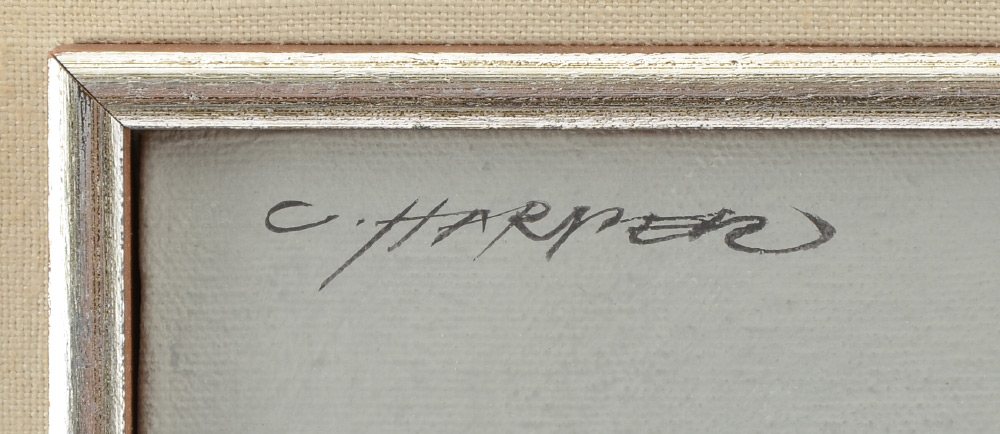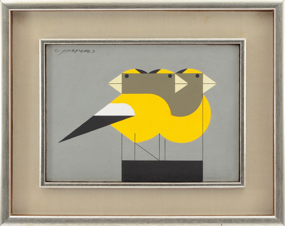 HARPER, Charley, (American, 1922-2007): Evening Grosbeaks, Oil/Canvas Mounted to Board, 8.5'' x 11.75'', signed upper left, original period frame 14'' x 17.25''.