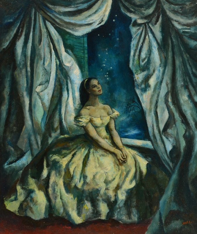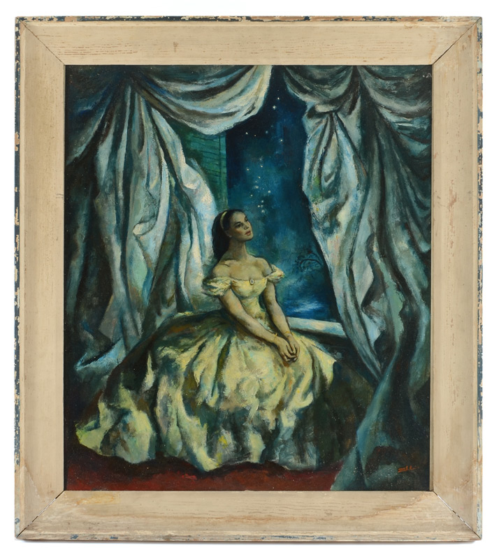 STAHL, Ben, (American, 1910-1987): Illustration Perhaps of A Young Beauty Seated by Her Bedroom Window at Night, Oil/Masonite, 23.5'' x 20 1/8'', signed lower right, painted frame 27.5'' x 24.25''.