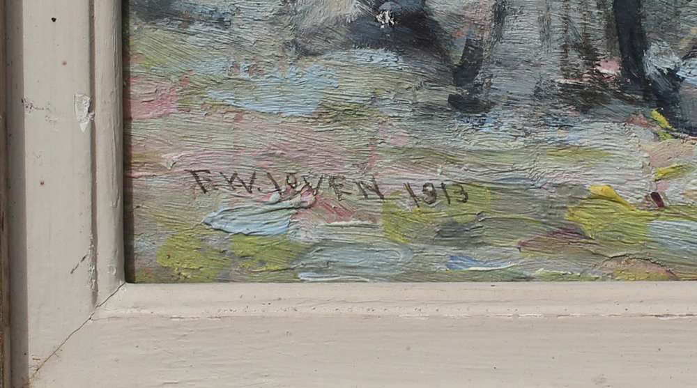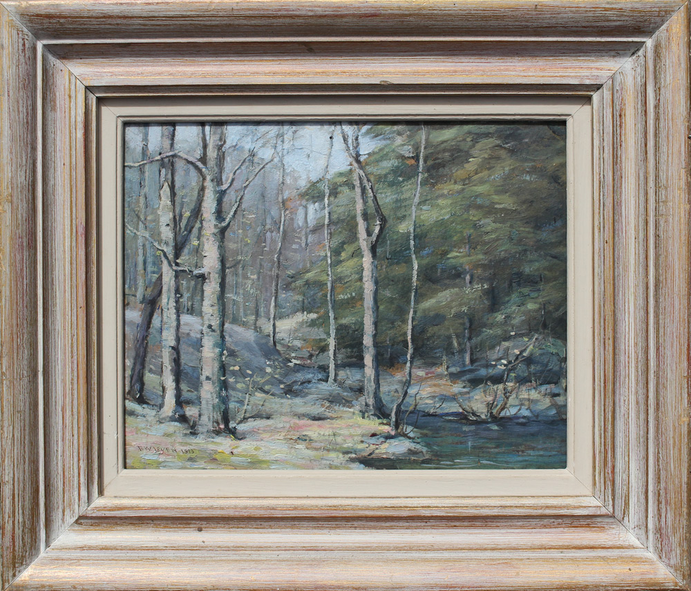 LOVEN, Frank, (American, 1869-1941): ''Hemlock Brook'', Branling Lake, April 24, 1913, Oil/Board, 8'' x 10'', signed lower left and dated, also signed and titled verso. Framed 12.5'' x 14.5''.