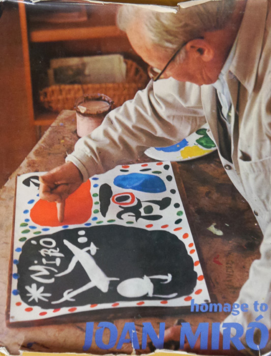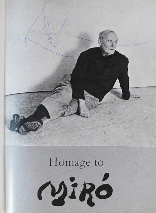 SIGNED HOMAGE TO JOAN MIRO BOOK: ''Homage to Joan Miro'', edited by G. di San Lazzaro, published 1972 by the Tudor Publishing Company, signed on frontice by Joan Miro. Original dust jacket, cloth covers, overall measures 12 3/4'' x 10''.