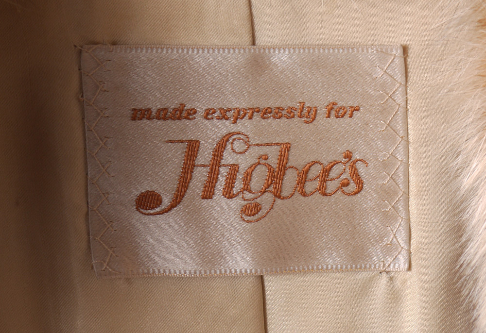 CANADIAN LYNX FUR STROLLER LENGTH COAT: Natural lynx with generous collar and sleeves. Sold with copy of 1983 appraisal for $8700. Maintained in cold storage. Higbee label. Measures approx. 30'' collar to hem, 19'' shoulder to shoulder, 21'' shoulder to cuff.