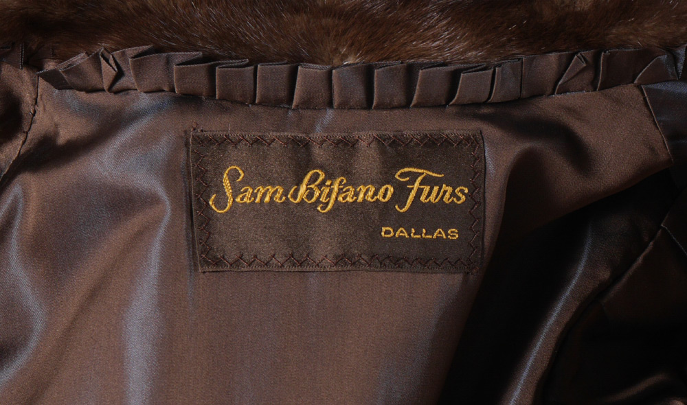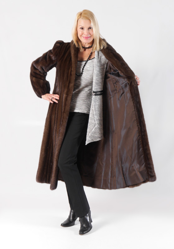 FULL LENGTH LUNARAINE MINK COAT: Custom/tailor made, size 6, from Sam Bifano Furs in Dallas, TX. Stand up collar with narrow lapel. Always kept in professional cold storage. Measures approx. 45'' collar to hem, 17'' shoulder to shoulder and 25'' shoulder to cuff.