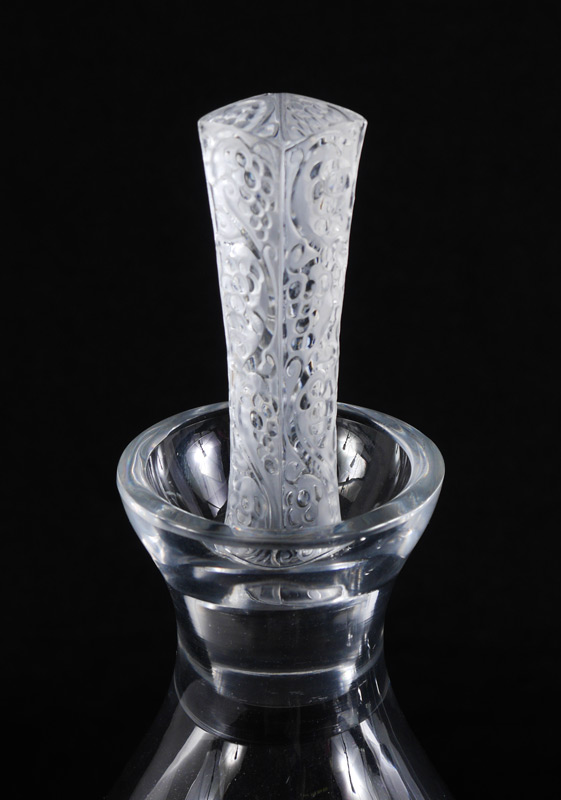 3 PIECE LALIQUE PHALSBOURG CORDIAL SET: 3 pieces of Lalique crystal in the Phalsbourg pattern to include 1) Decanter with stopper, 9 5/8'' h. x 4 3/4''. 2-3) Pair of cordials, 5 3/4'' h.