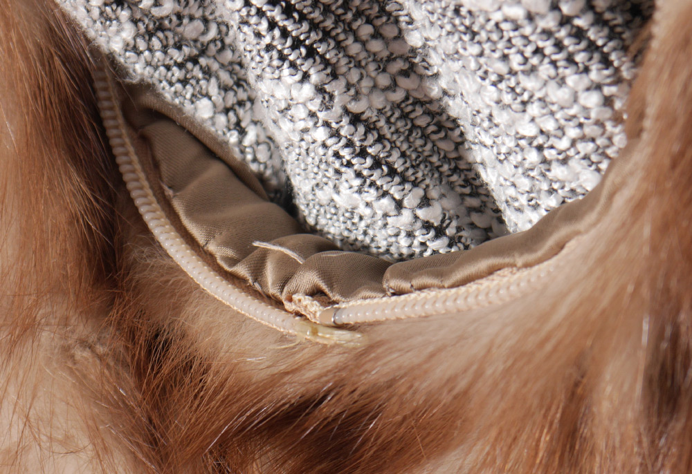 MINK FUR VEST: Honey color mink fur vest bears the Bruno & Joseph of Chicago label. Once had detachable sleeves. Measures approx. 28'' collar to hem, 19'' shoulder to shoulder.