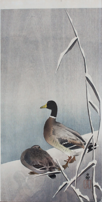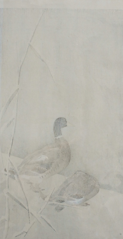 KOSON, Ohara, (Japanese, 1877-1945): 2 Mallards, Woodblock Print, 14'' x 7.5'', unframed.