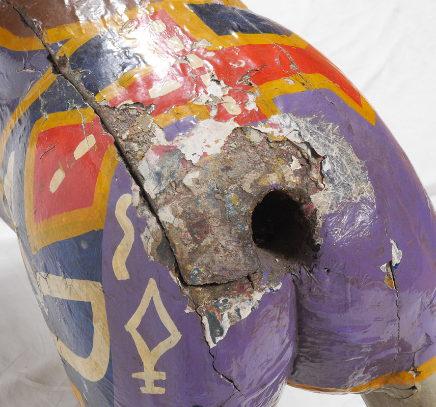 CARVED CAROUSEL HORSE: Carved wood and composite, polychrome paint decorated. 36'' h. x 62'' x 12''.
