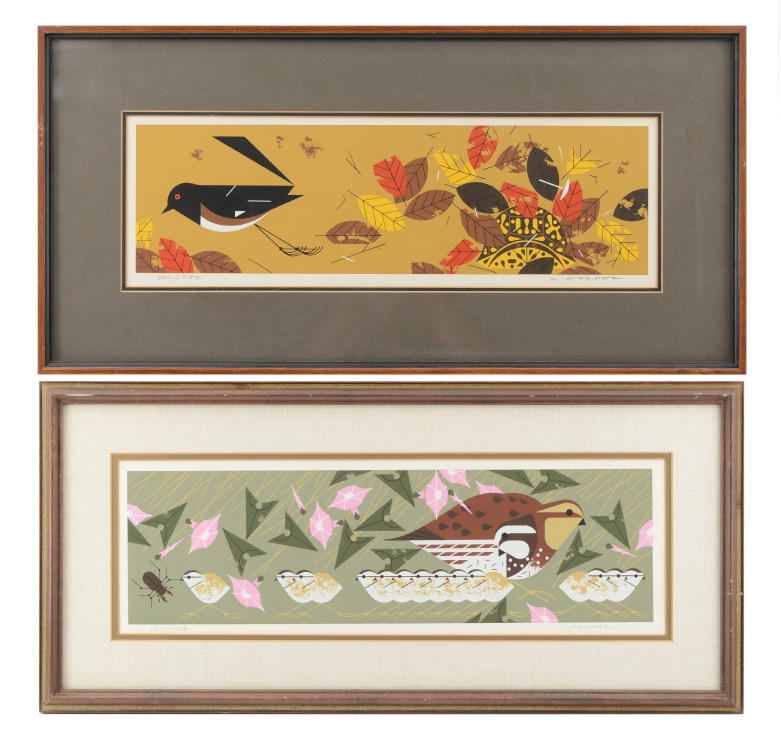 HARPER, Charley, (American, 1922-2007): 2 framed Serigraphs, 1) ''Homebody'', (Box Turtle), image size 6'' x 20'', pencil signed and numbered edition of 1500 printed in 1972, framed, 14'' x 28''; 2) ''Family Outing'' Bobwhite Family, image size 6'' x 20'', signed and numbered edition printed in 1970, framed, 9'' x 23''.