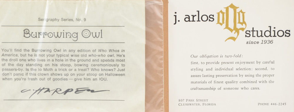 HARPER, Charley, (American, 1922-2007): ''Burrowing Owl'' (Halloween), Serigraph, signed and numbered edition of 500 printed in 1970, framed, 22'' x 13''.