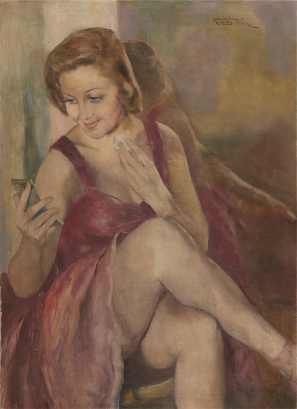 FRIED, Pal, (Hungarian, 1893-1976): Ballerina Adjusting Her Makeup, Oil/Canvas, 31.5'' x 23.5'', signed upper right, unframed, faintly titled in marker verso.