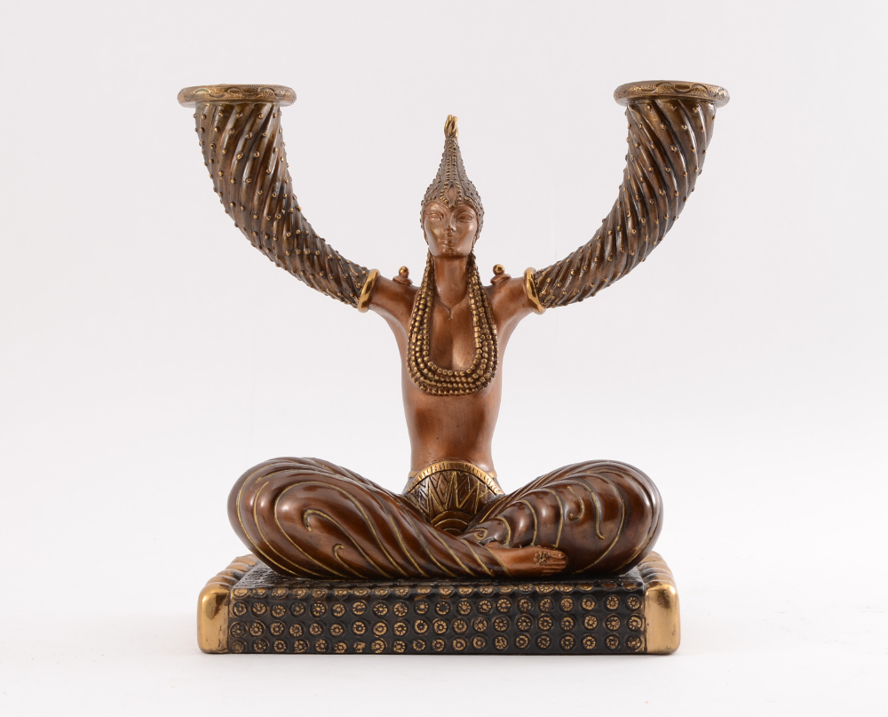 ERTE ''FORTUNE'' BRONZE CANDLE HOLDER SCULPTURE: 11 1/8'' h., signed and numbered 68/395, CON - KER foundry mark, dated 1987.