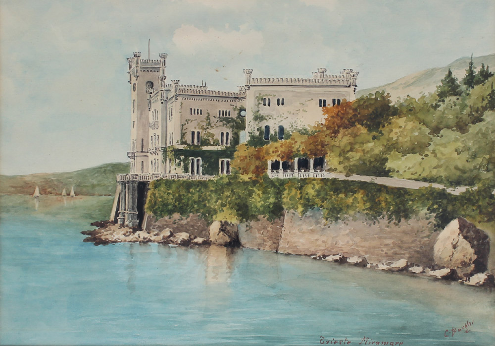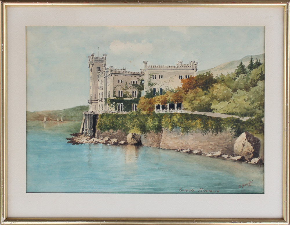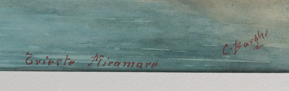 ITALIAN SCHOOL PAINTING TRIESTE: ''Trieste Miramare'', Watercolor and Ink on Paper, sight size 9.25'' x 13.5''. (23.5 x 34.3 cm), signed and titled ''C. Borghi...'', framed.