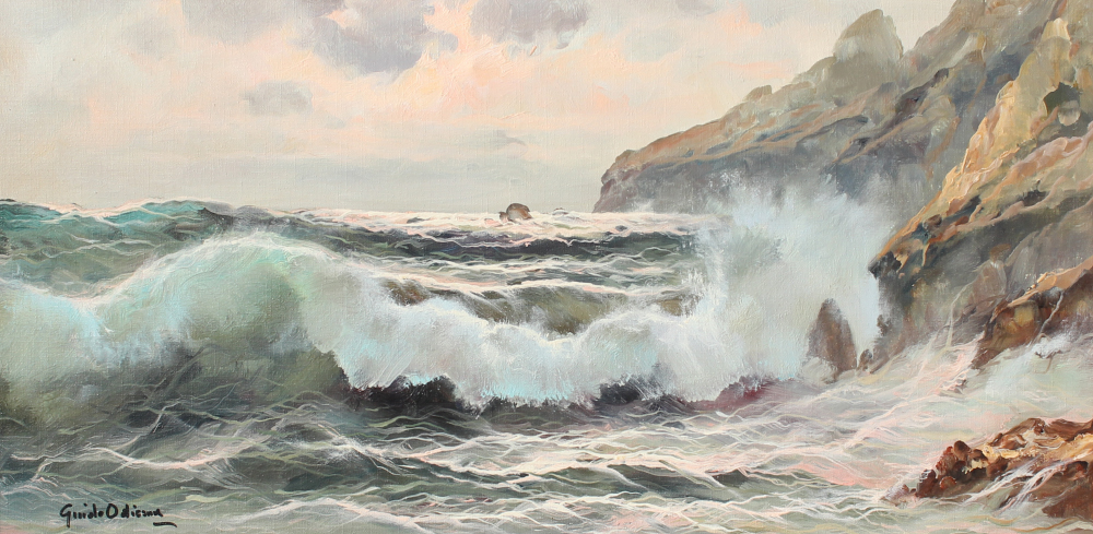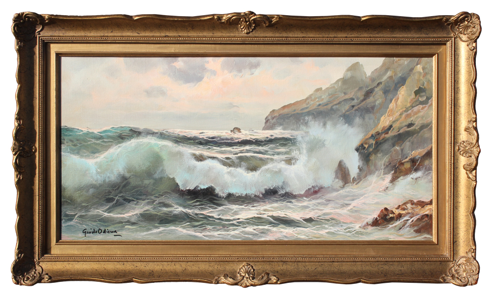 GUIDO ODIERNA CRASHING SURF PAINTING: Crashing Surf, Oil/Canvas, 12'' x 24'', signed lower left, framed, 16.5'' x 28''.