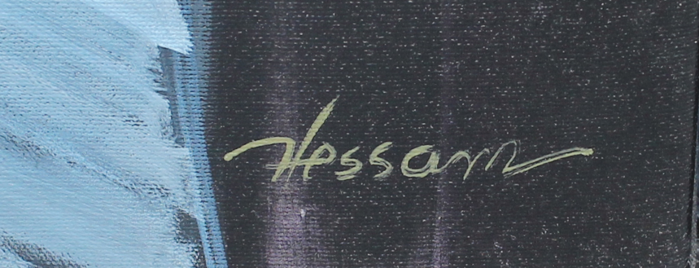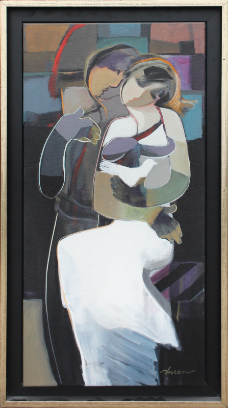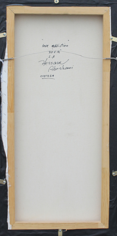 ABRISHAMI, Hessam, (Iranian, born 1951): ''Love Addiction'', Acrylic/Canvas, 30'' x 15'', signed lower right, titled and signed verso, custom frame, 34'' x 18.5''.