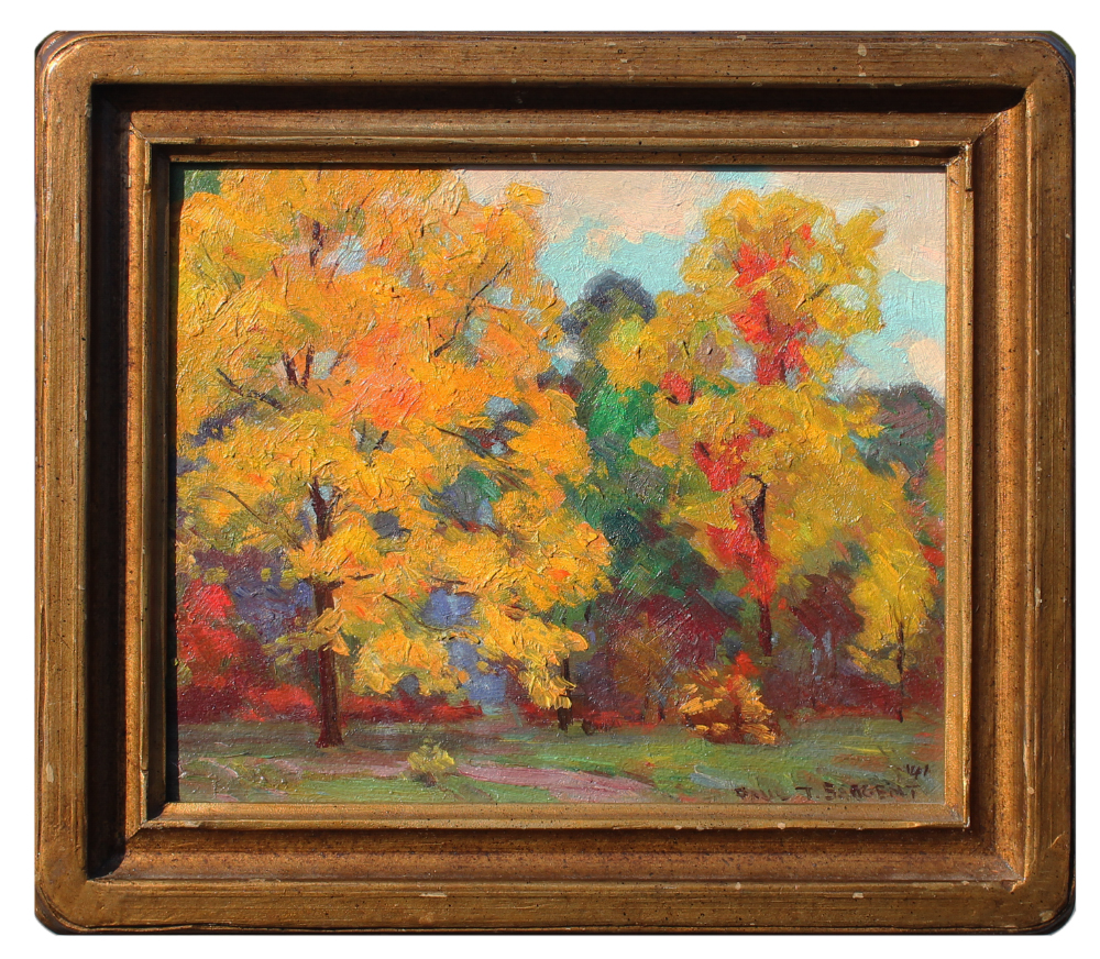 SARGENT, Paul, (American, 1880-1946): Autumnal Landscape, Oil/Canvas Board, 10'' x 12'', signed lower right, dated 1941, also signed and dated verso, original carved and gilded frame, 13.5'' x 15.5''.