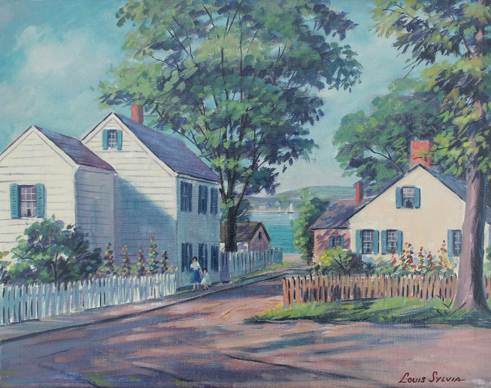 SYLVIA, Luis, (American, 1911-1987): Rockport Street Scene, Oil/Board, 18'' x 22''.