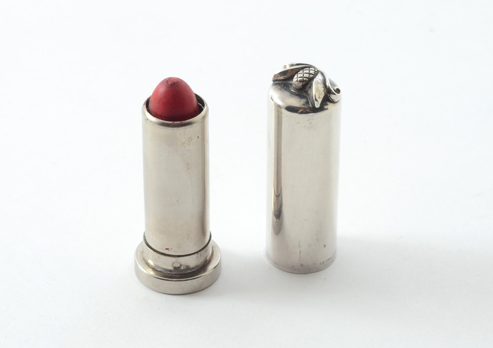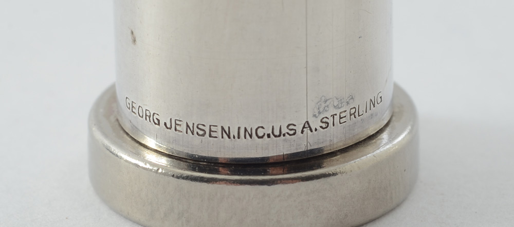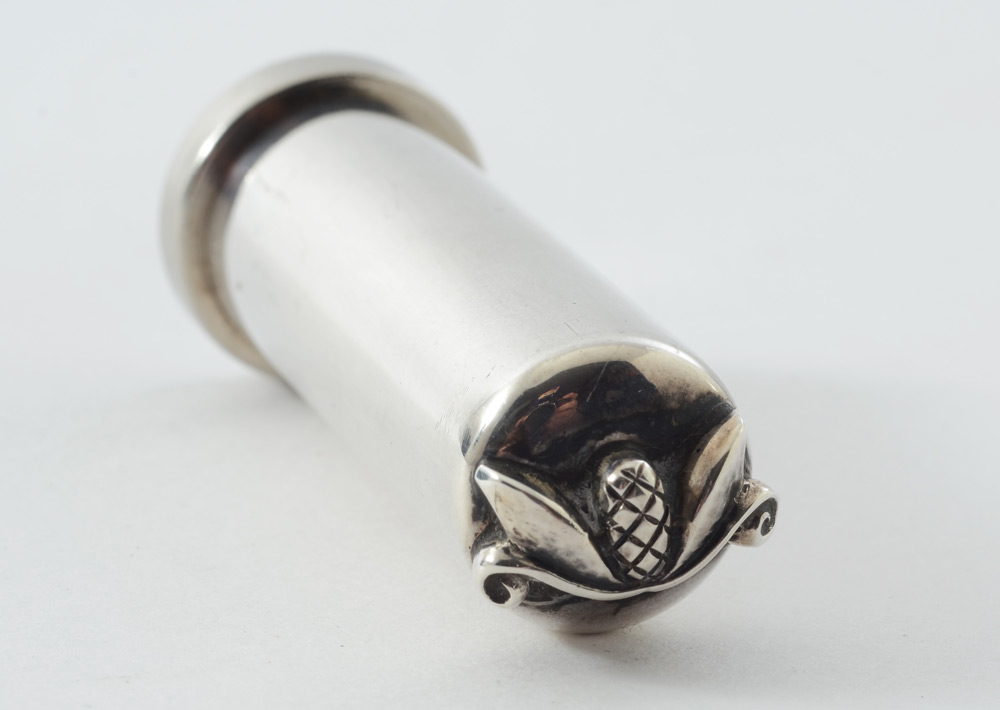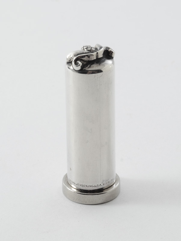GEORG JENSEN STERLING LIPSTICK HOLDER: ''Acorn'' pattern lipstick holder marked Georg Jensen Inc., USA, Sterling. 2'' h.