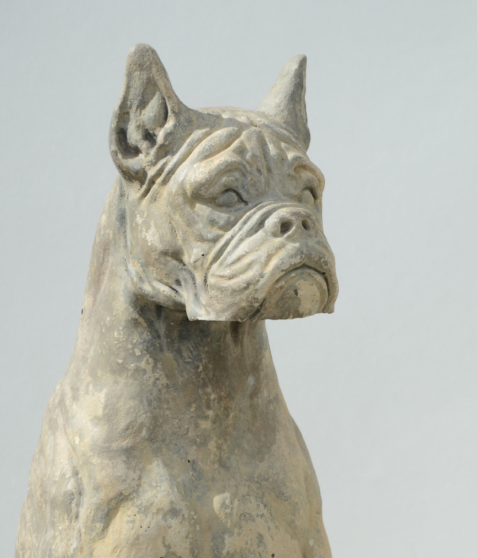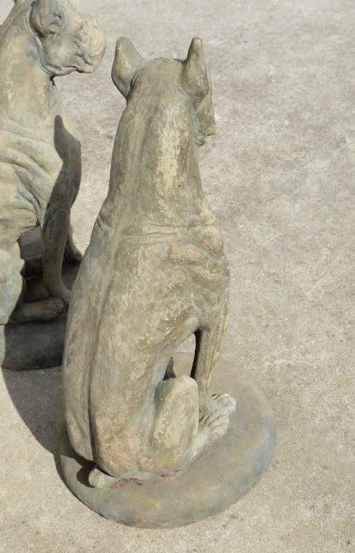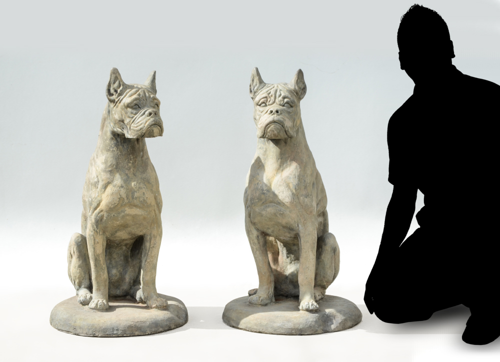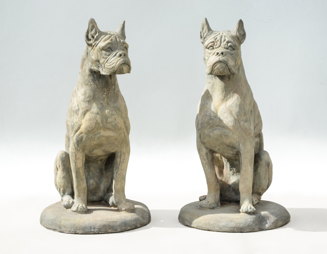 PAIR OF CAST CONCRETE BOXER DOGS: Matched pair, each approx. 32 1/2'' h. x 19'' dia.
