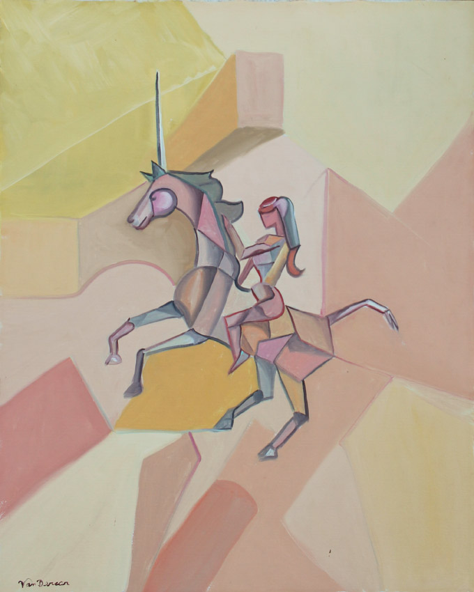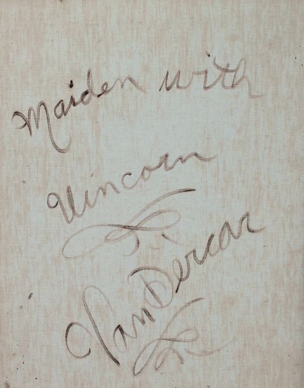 VANDERCAR, Lewis (American, 1913-1988): ''Maiden with Unicorn'', Oil/Canvas, 30'' x 24'', signed lower left, signed and titled verso, unframed.