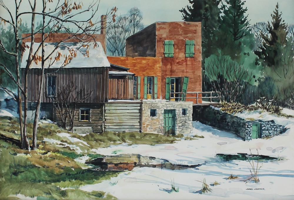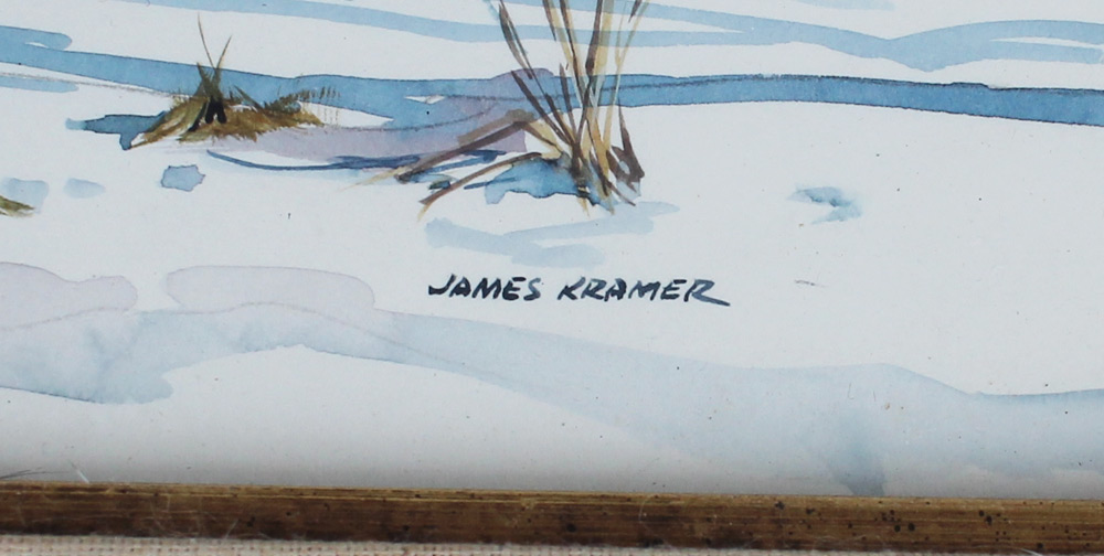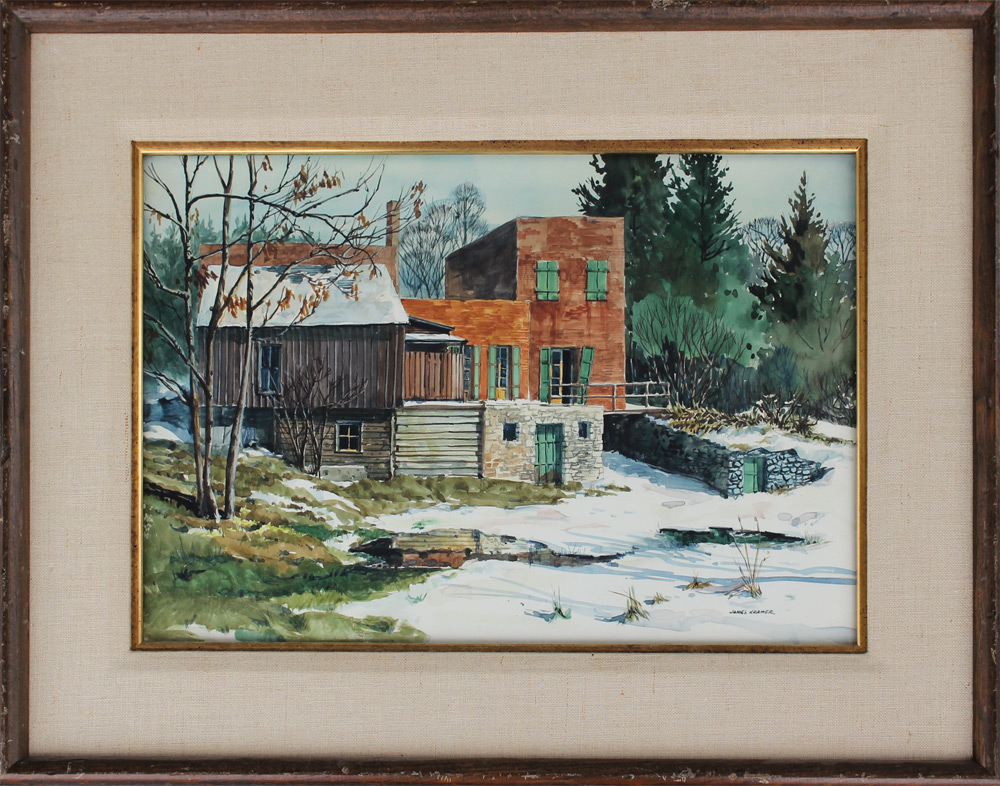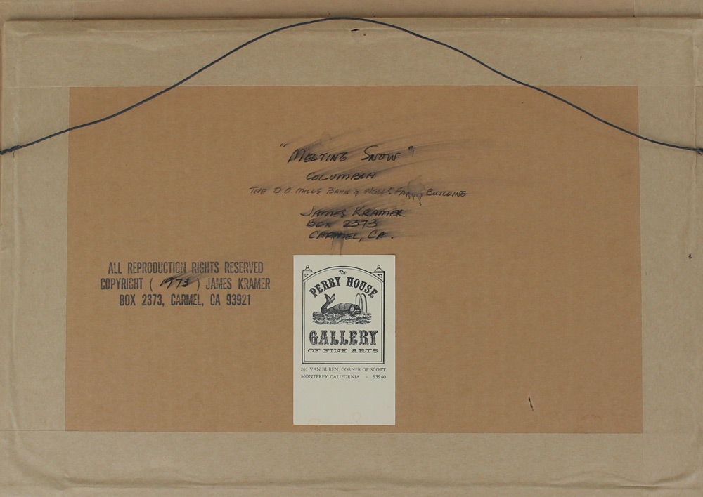 KRAMER, James, (American, born 1927): ''Melting Snow'' Columbia, DO Mills Bank and Wells Fargo Building, Watercolor, 9.5'' x 14.5'', signed lower right, signed and titled verso, framed 16.25'' x 21.25''.