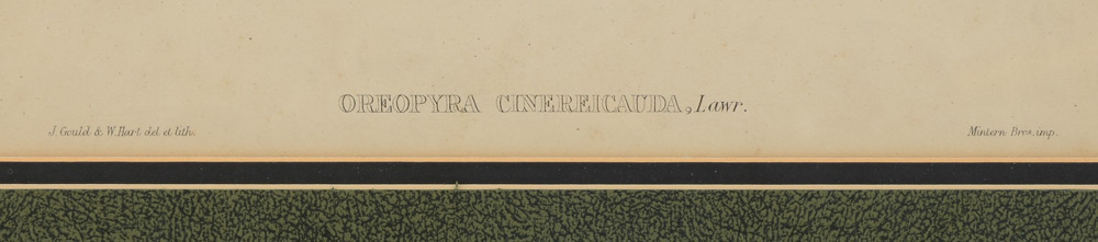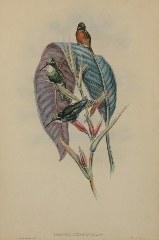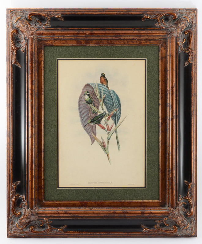 GOULD OREOPYRA LITHOGRAPH: Oreopyra Cinereicauda, sight size 19'' x 12.75'', elaborate contemporary frame 35'' x 28.5''.