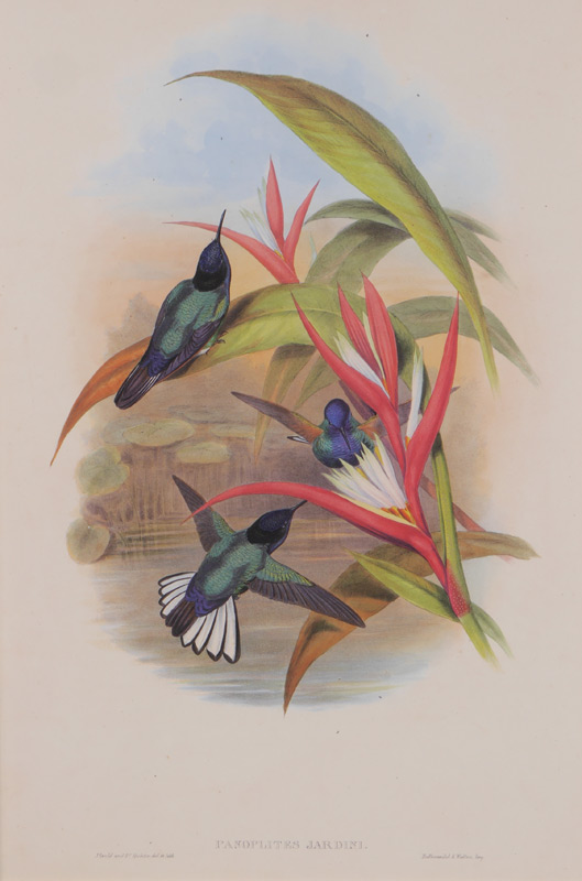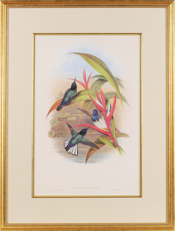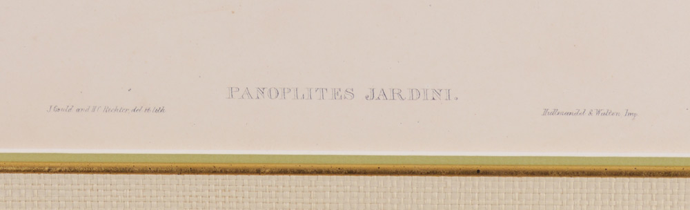 ORIGINAL GOULD LITHOGRAPH PANOPLITES JARDINI: 20.5'' x 13.5'', framed, 29.5'' x 22''.