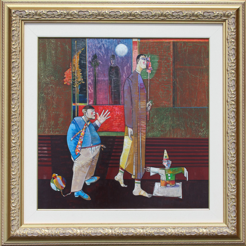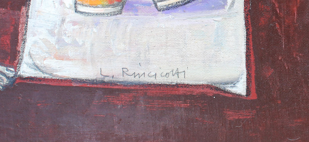 RINCICOTTI, Luigi, (Italian, 1941-): ''La Stanza Dei Giochi'', Oil/Canvas on board, 23.75'' x 23.75'', signed lower right, label affixed verso, custom framing, 34'' x 34''. Former Collection of Medici Gallery Sarasota Florida.