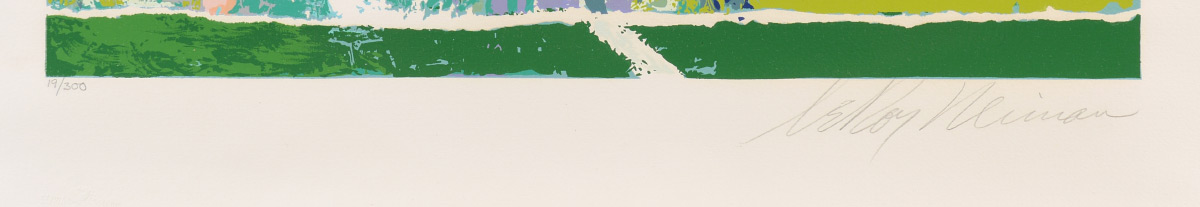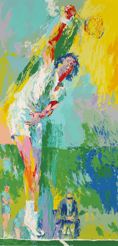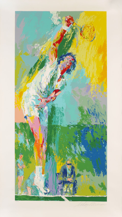 NEIMAN, Leroy, (American, 1927): ''Sun Serve'', Male Tennis Player Serving Ball, Serigraph, 41.75'' x 23 7/8'', unfamed, full margins, pencil signed lower right, numbered lower left 19 of 300, Syria Studio Wine Stamp lower left.