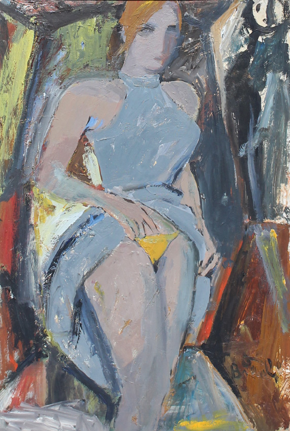PAOLI, Bruno, (Italian, 1915-2005): ''Girl in Grey Dress'', Oil/Canvas, 19.5'' x 13.75'', signed lower right, also signed and titled illegibly verso, custom framed, 32'' x 26''. Former Collection of Medici Gallery Sarasota Florida.