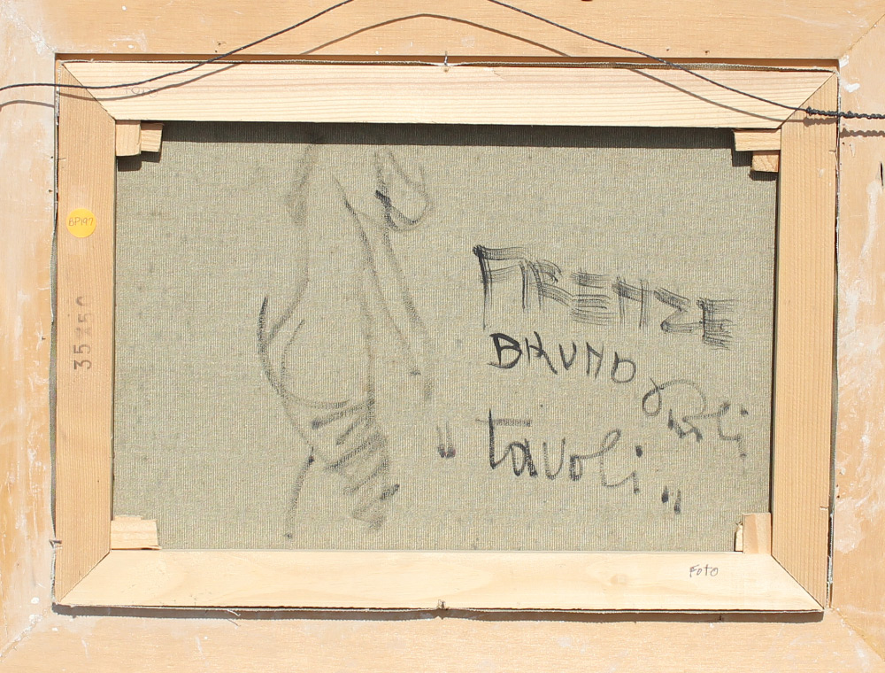 PAOLI, Bruno, (Italian, 1915-2005): ''Tavoli'', Oil/Canvas, 13.5'' x 19.75'', signed lower right, signed and titled verso with artist's remarque, custom frame, 24'' x 30''. Former Collection of Medici Gallery Sarasota Florida.