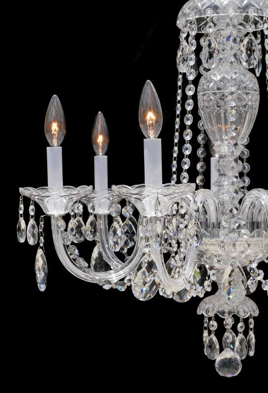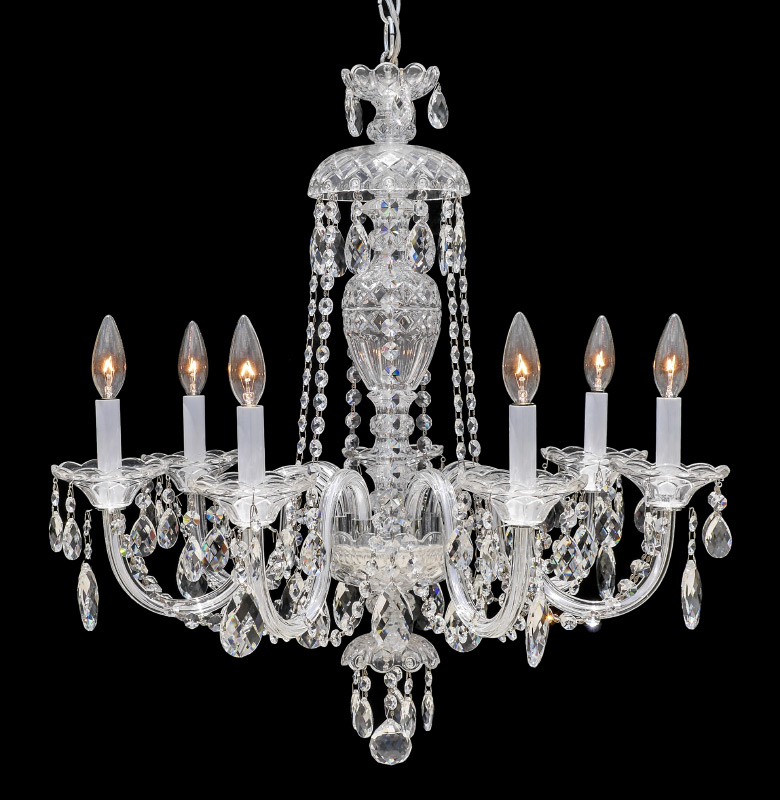 SCHONBEK 7 LIGHT CRYSTAL CHANDELIER: Model 2995-40h, 7 arms with crystal swags and drops. Overall measures 25'' h. x 26'' dia.