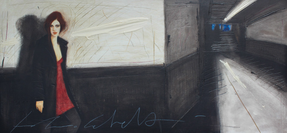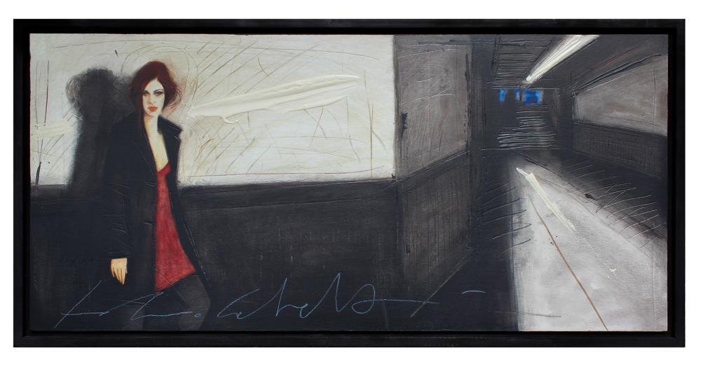 CALVETTI, Fabio, (Italian, 1956-): ''Nei Tuoi Sogni'', Oil/Board, 19.75'' x 43.5'', signed lower margin, signed, dated and titled verso, custom frame, 21.5'' x 45.5''. Former Collection of Medici Gallery Sarasota Florida. Cost: over 1,700.