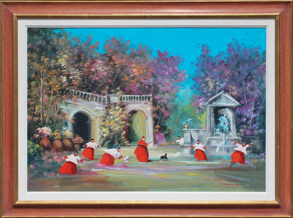 MARTINI, Norberto, (Italian, 1940-2007): ''Fantastic Garden'', Oil/Canvas, 27.5'' x 39.5'', signed lower right, signed and titled verso with artists remarque, custom frame, 36'' x 48''. Former Collection of Medici Gallery Sarasota Florida.