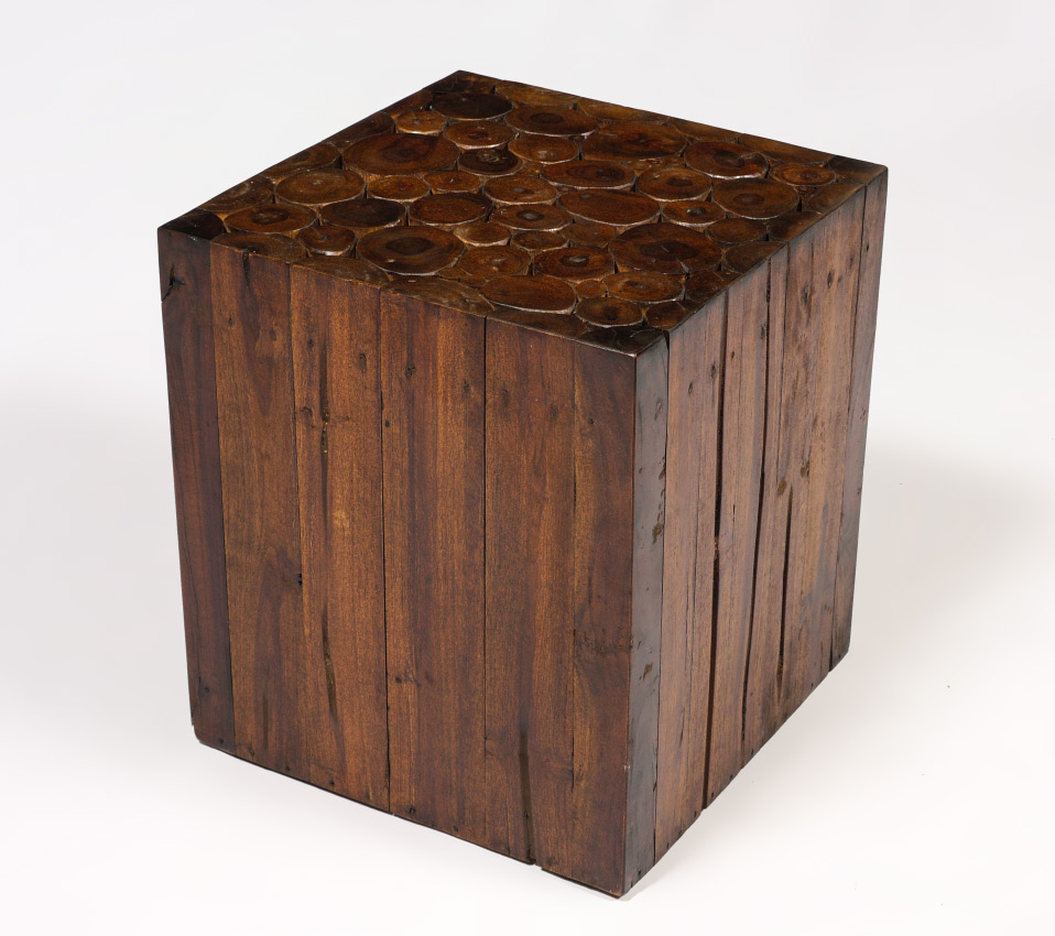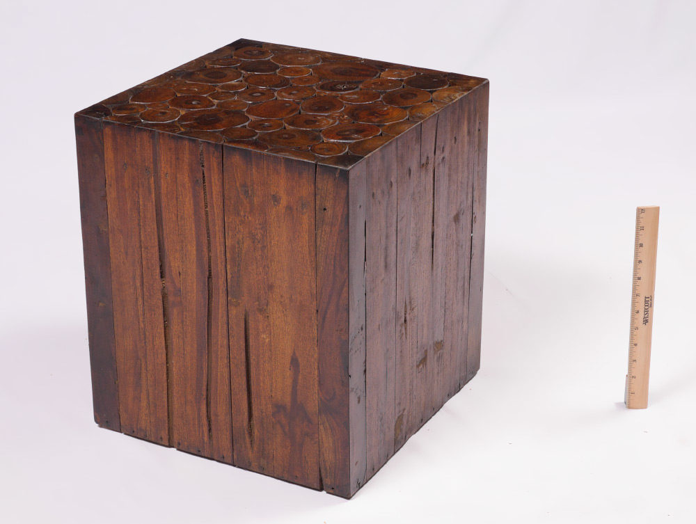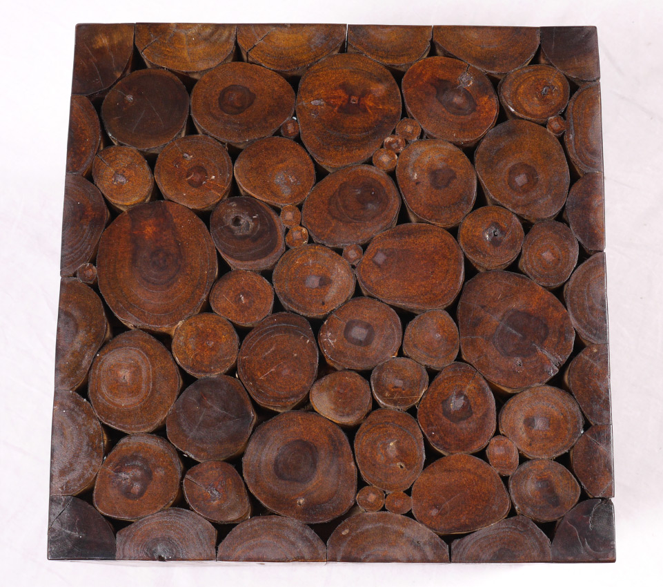UNUSUAL WOOD BRANCHES OCCASIONAL TABLE: Square table from section and cross sections of tree branches, no visible mark or labels. Overall measures 18'' h. x 16'' square.