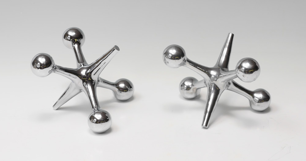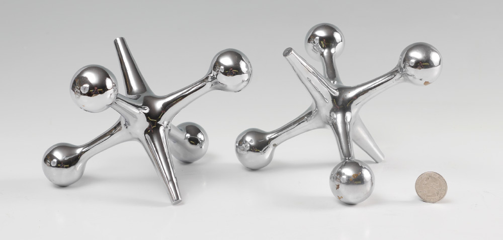 PAIR JEFF CURRY JACK BOOKENDS: Chrome finish, 6'' h. x 7 1/2'' dia.
