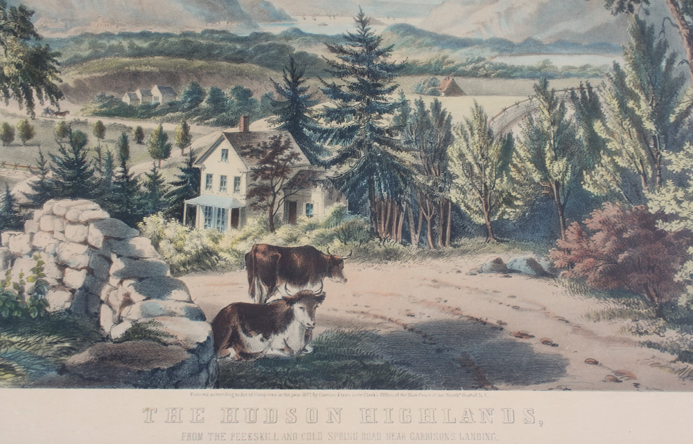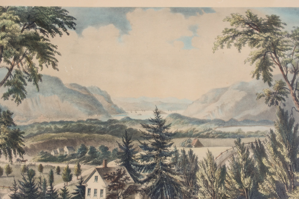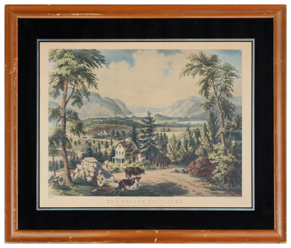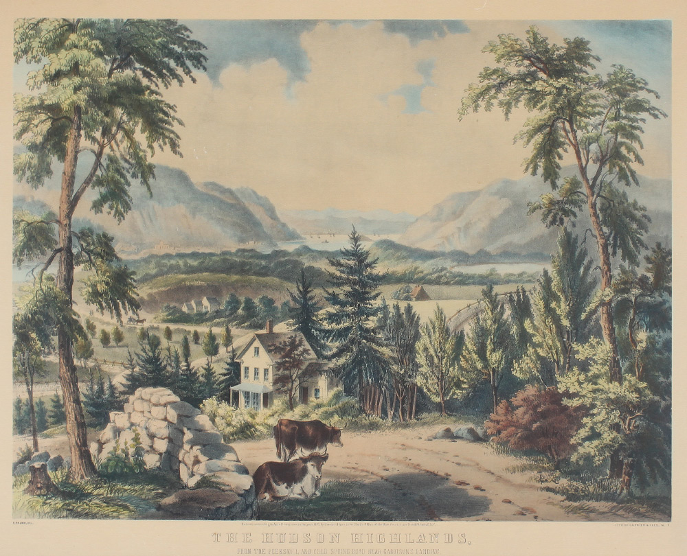 CURRIER AND IVES LITHOGRAPH ''THE HUDSON HIGHLANDS'': From the Peekskill and Cold Spring Roads near Garrison's Landing, sight size 18.25'' x 24.75'', wooden frame, 27'' x 32.5''.