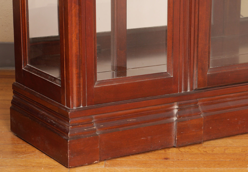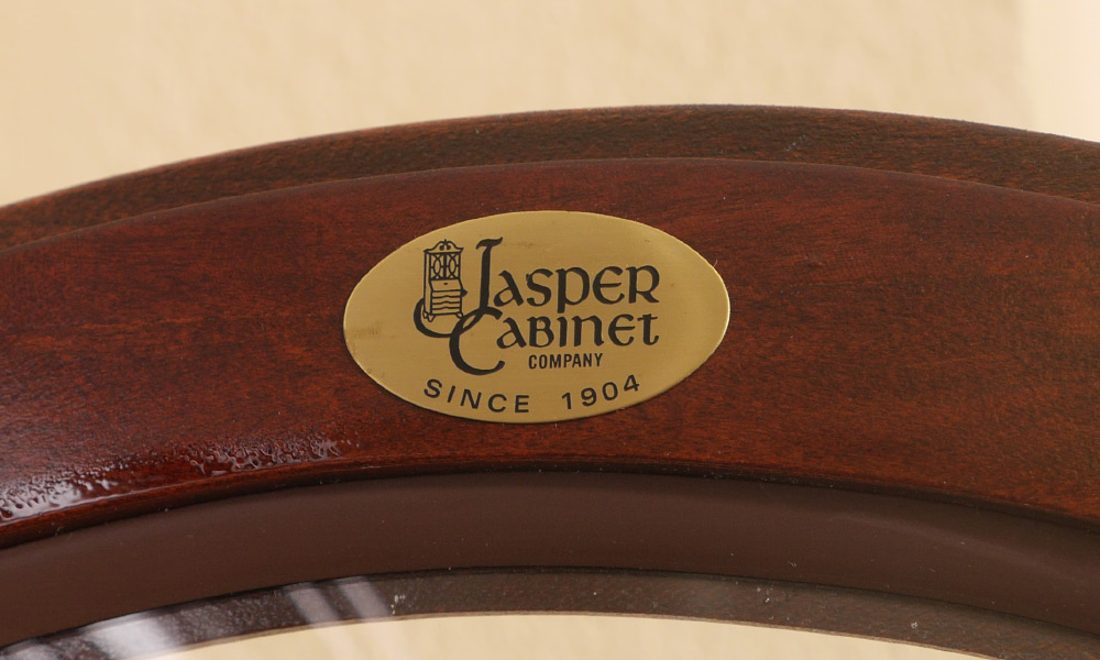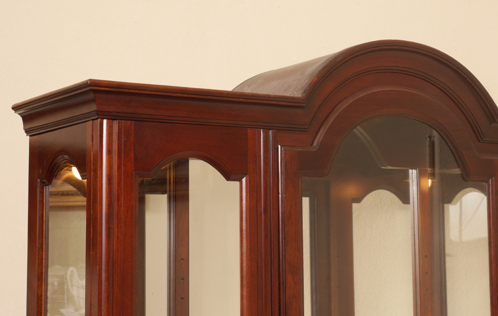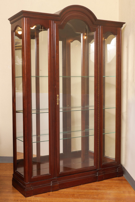 JASPER LIGHTED DISPLAY CABINET: Arched center door, glass panels either side and side windows. Mirrored back illuminated interior with shelves. Overall measures 78 3/4'' h. x 52'' x 13 3/4''.